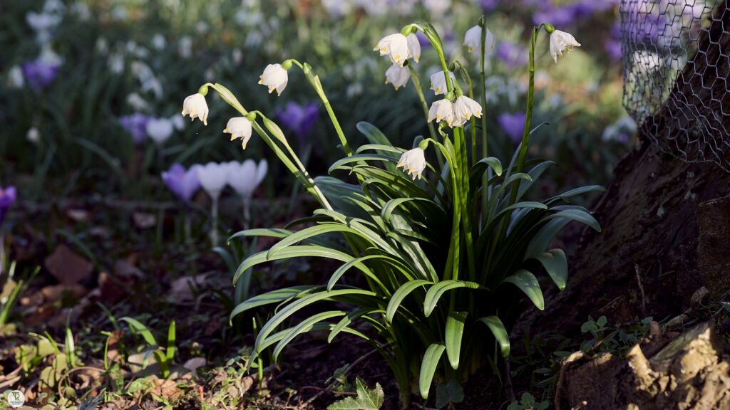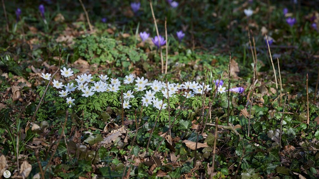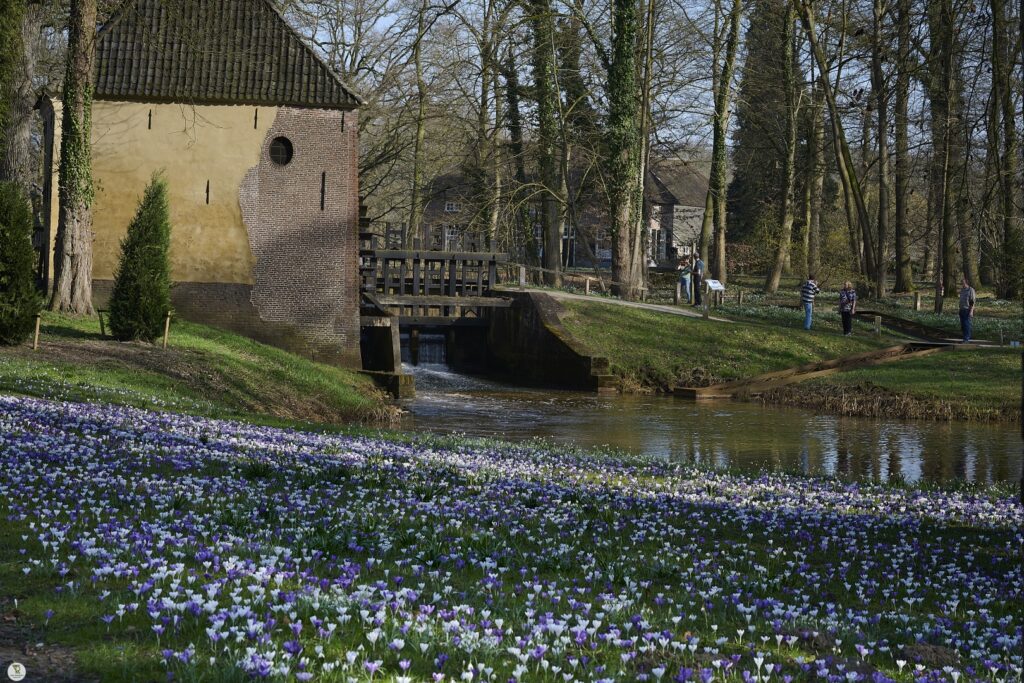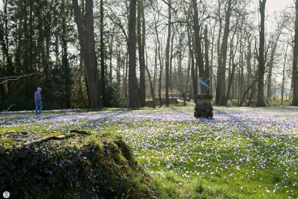 In maart bloeien rondom het kasteel diverse voorjaarsbloemen.