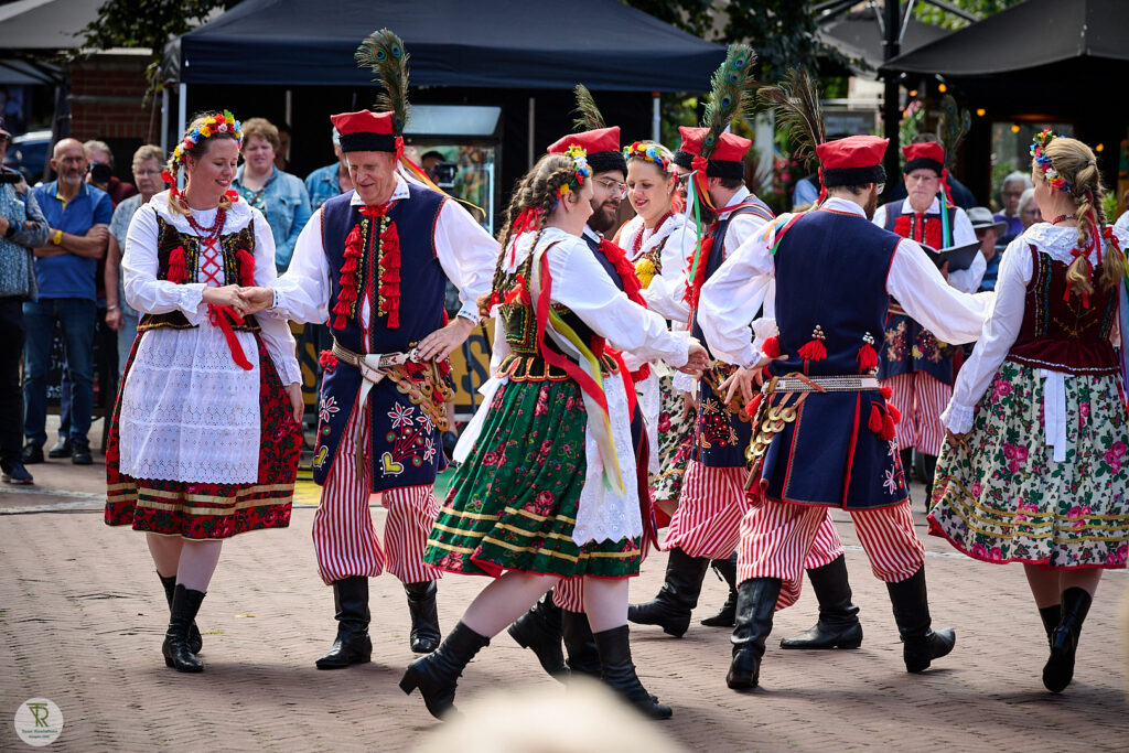 20 augustus 2025 – Op zaterdagmiddag was op de Markt in Zelhem de viering van het 70-jarige jubileum van de folkloristische dansgroep ‘Wi’j eren ’t Olde’ uit Velswijk. De Poolse zang- en dansvereniging ‘Podlasie’ uit Brunssum verleende ook haar medewerking.